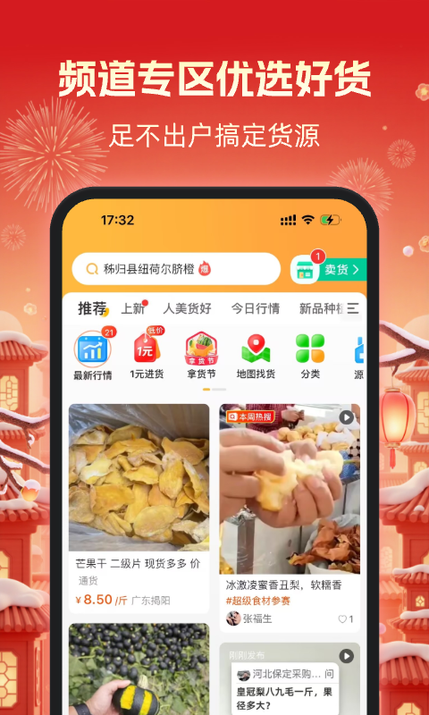 看视频了解今日行情及时掌握上新的产品产地,快速低价购买所选农产品新货。