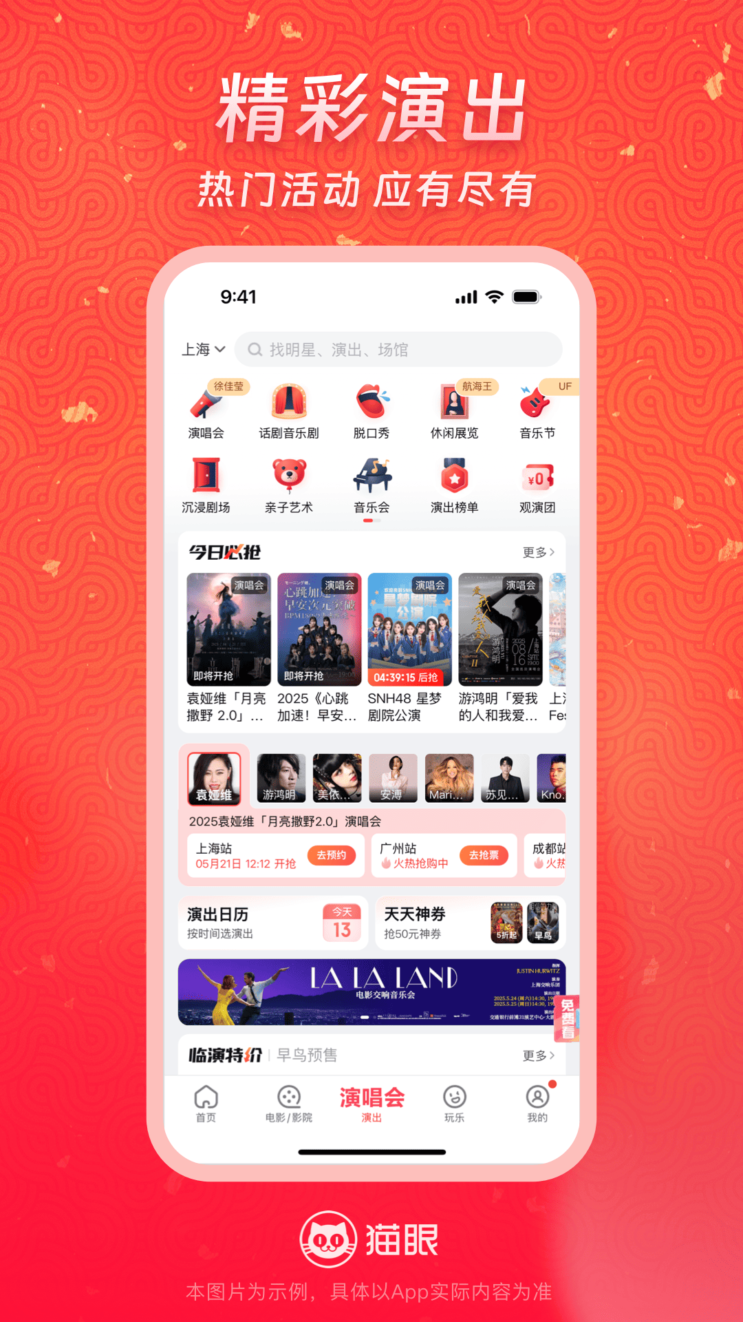 【演出抢票超轻松】热门明星艺人演唱会、音乐节、电竞体育赛事、脱口秀、话剧音乐剧、休闲展览等演出订票so easy,信息准确推送不迷路~