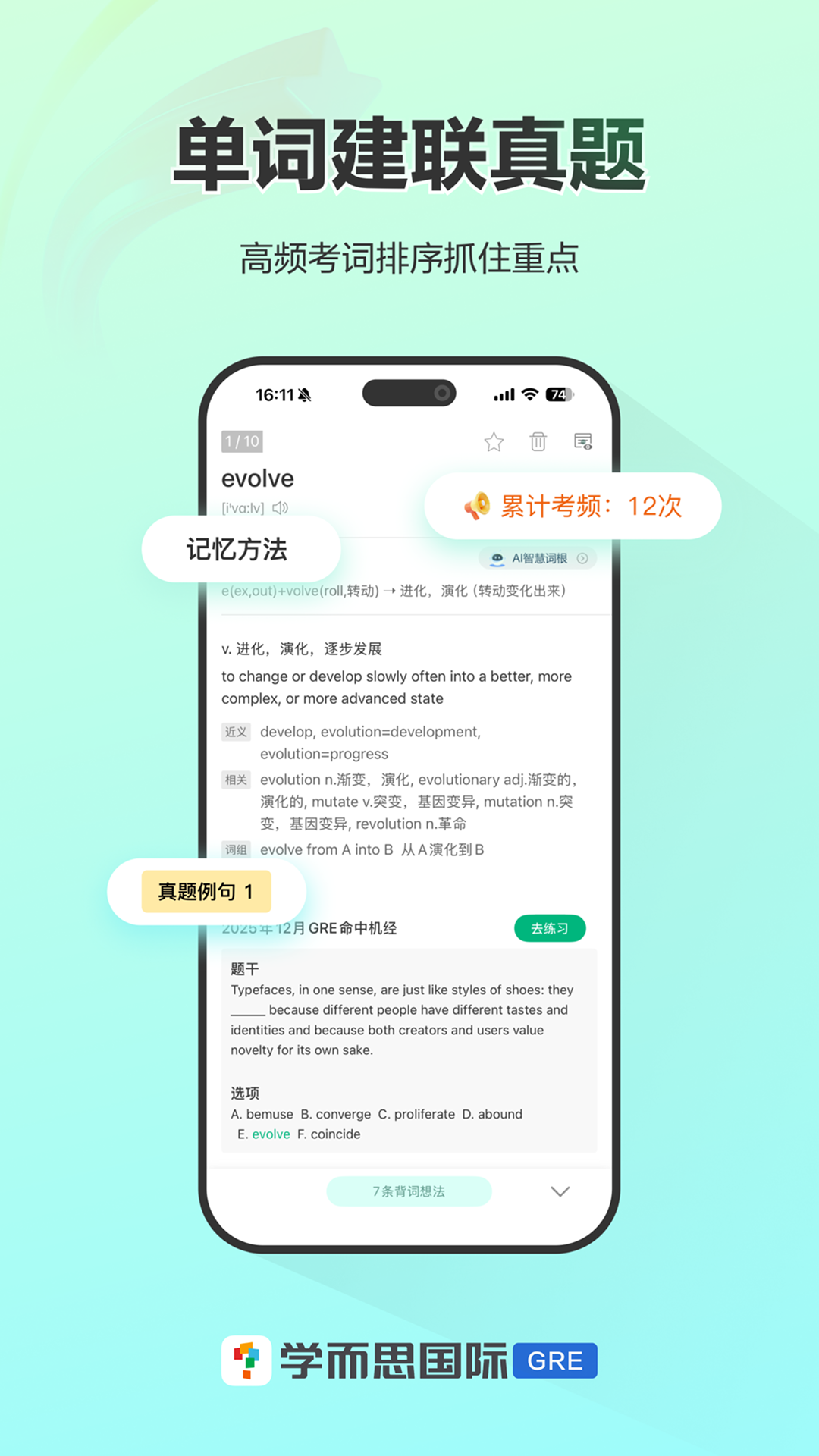 应用详情:《GRE3000词》,应对新G的权威刷词神器。配合单词巩固练习,助你高效战胜GRE®单词难关。