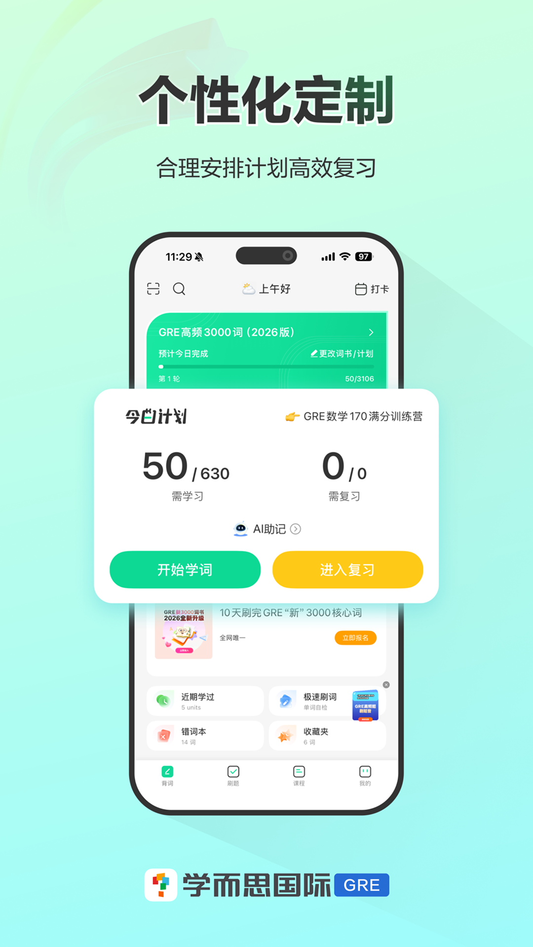 内置flashcards功能,手机化身单词卡,一分钟刷掉120个单词。一小时啃完GRE®单词不再只是学霸界传说。