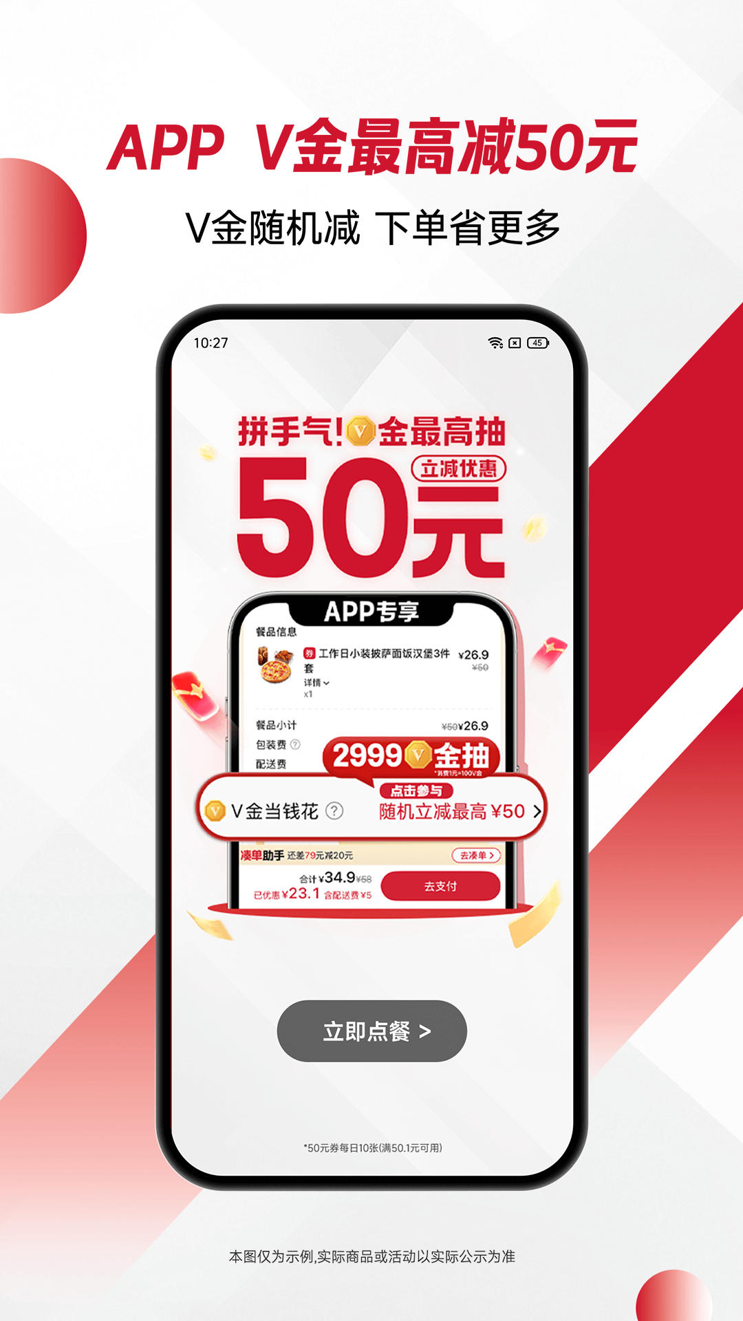 V金随心减-APP专享活动最高可减50元,快乐吃喝没负担!