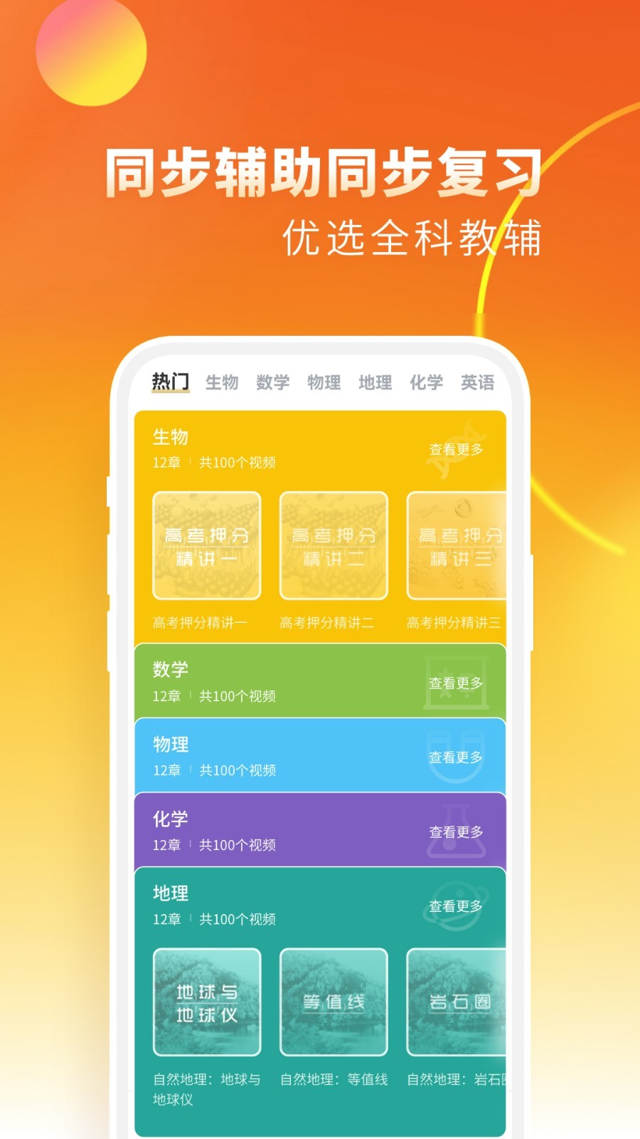覆盖高中数学、高中语文、高中英语、高中物理、高中历史、高中化学、高中政治、高中地理、高中生物九大科目!助你一圆高考梦!