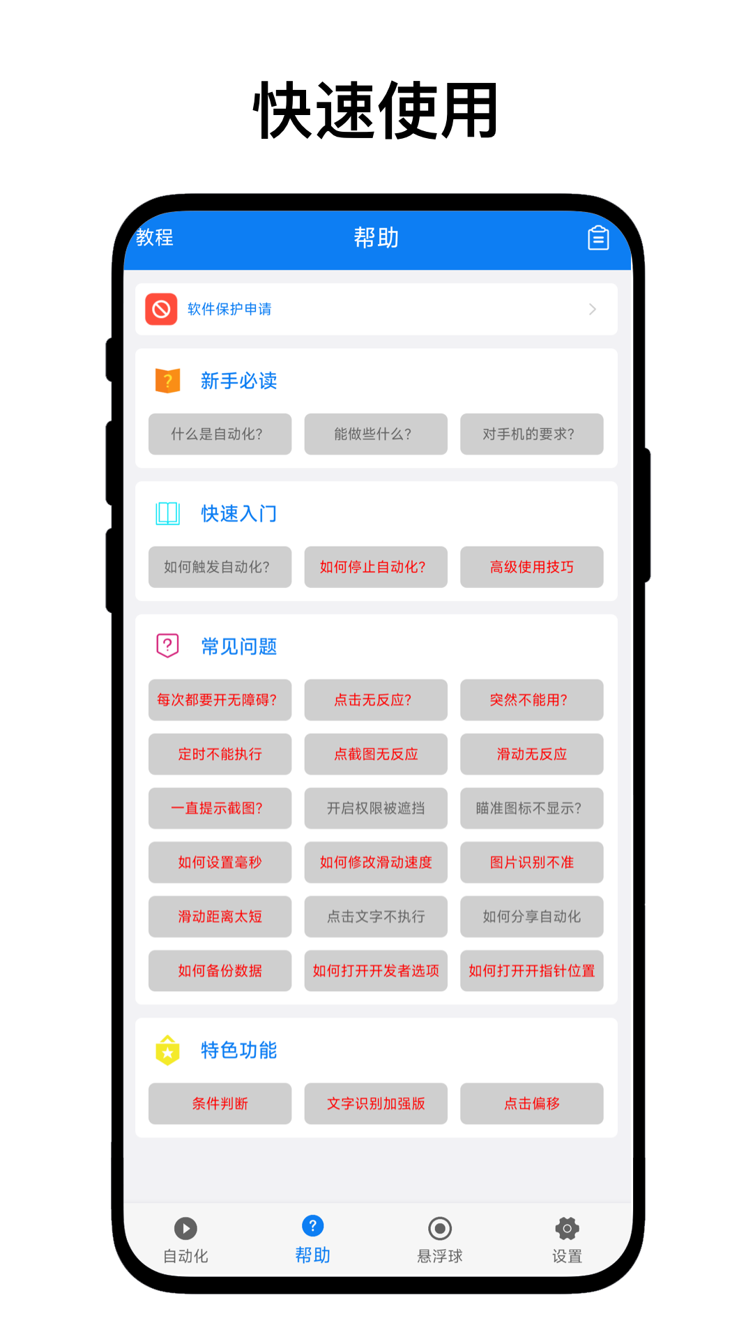 应用详情:一款手机版RPA(机器流程自动化)软件,致力于为用户提供可视化、低代码的编程方式实现自动化动作,从而提高手机使用效率。简单来说,用户可以类似搭建积木一样,将各种动作组合起来,形成工作流,然后一键触发即可。参考应用场景如下:一键打开健康码、一键打开蓝牙并部分音乐、一键呼叫亲人等。另外,基于AI人工智能,我们接了类似OCR文字识别服务、文字转语音服务、图片识别服务,用户也可以把本软件作为基础工具使用。
