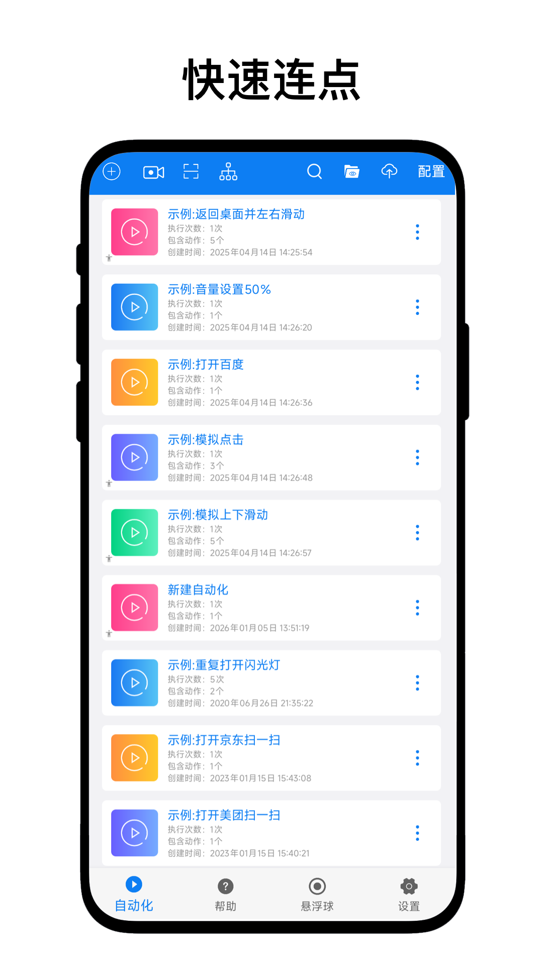 一款手机版RPA(机器流程自动化)软件,致力于为用户提供可视化、低代码的编程方式实现自动化动作,从而提高手机使用效率。简单来说,用户可以类似搭建积木一样,将各种动作组合起来,形成工作流,然后一键触发即可。参考应用场景如下:一键打开健康码、一键打开蓝牙并部分音乐、一键呼叫亲人等。另外,基于AI人工智能,我们接了类似OCR文字识别服务、文字转语音服务、图片识别服务,用户也可以把本软件作为基础工具使用。