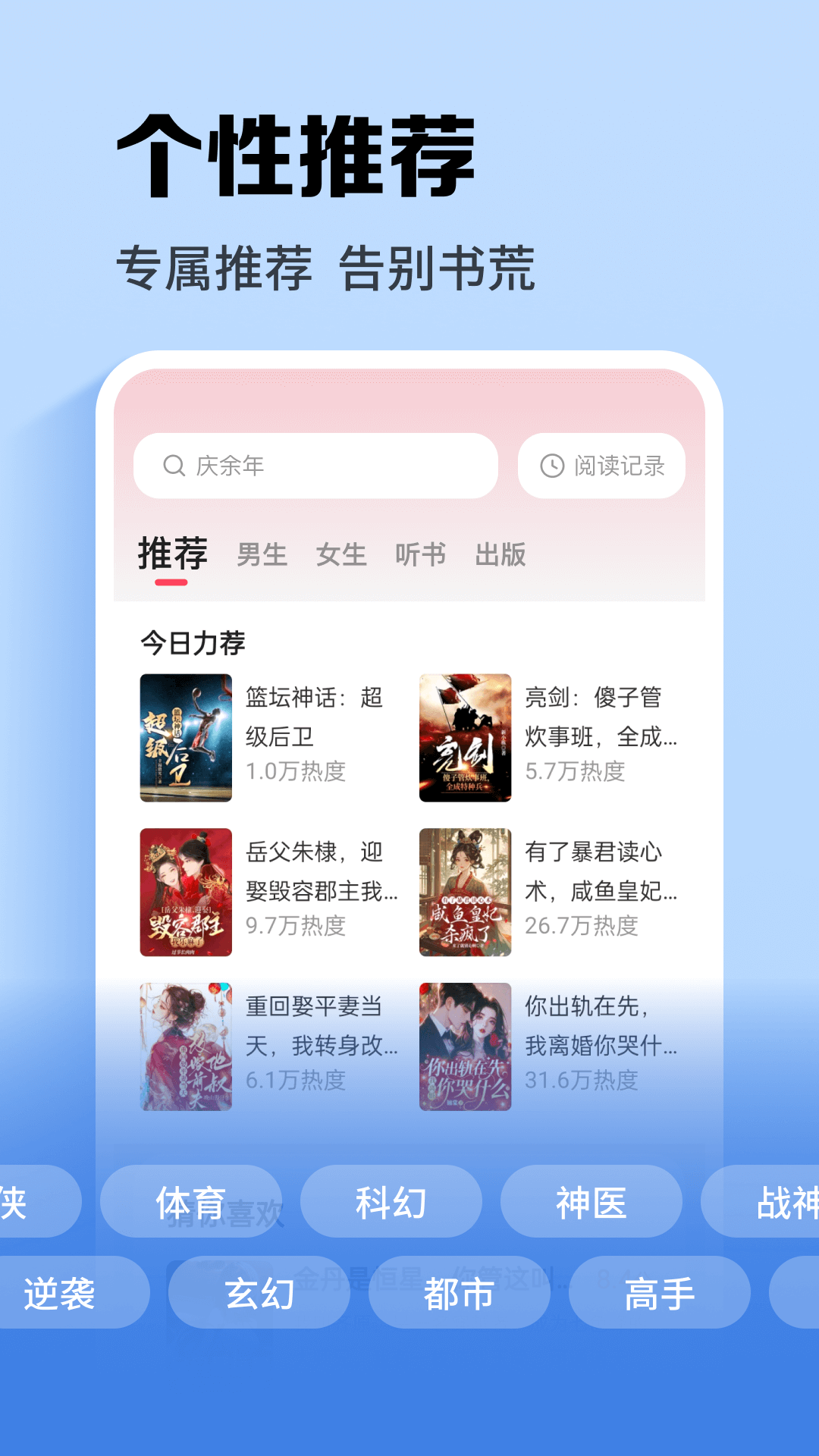 【种类丰富】这里有你专属的玄幻、武侠、仙侠、都市小说,科幻奇幻、历史军事、游戏竞技,懂你的app