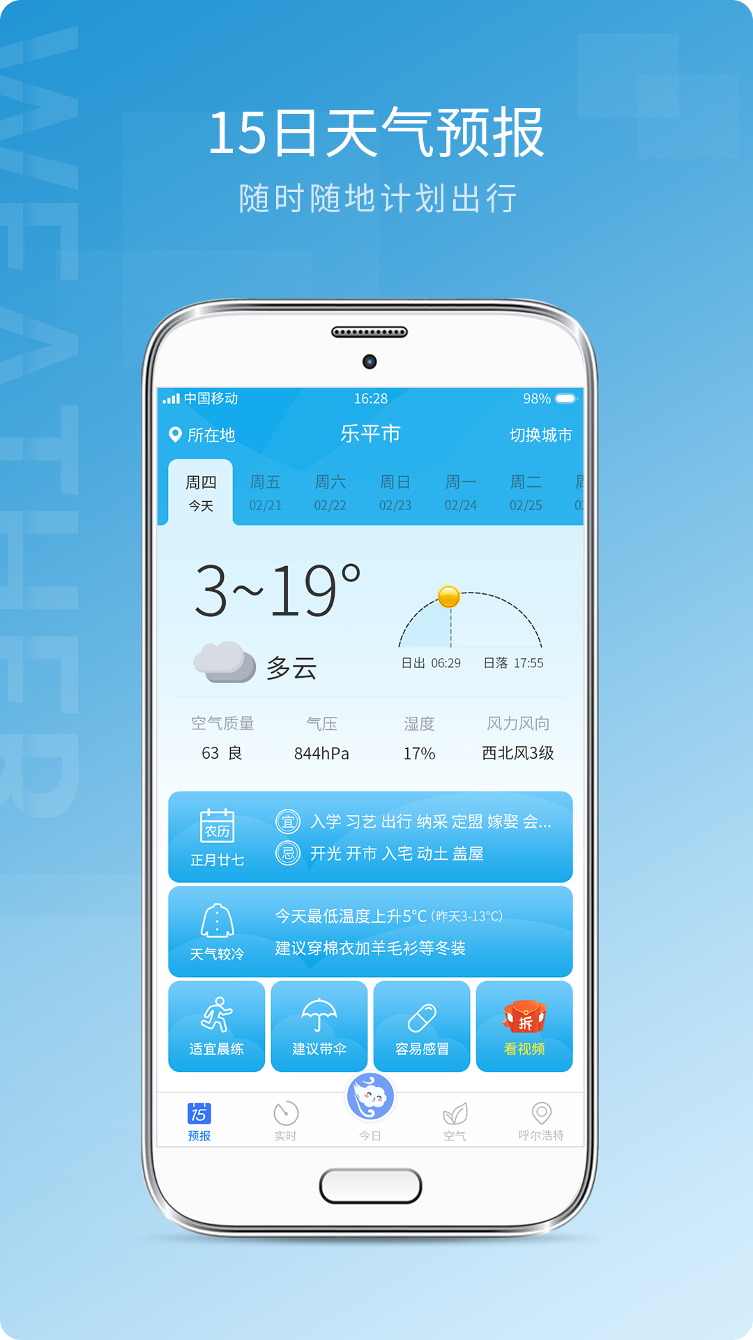 【15日天气】采用中国气象网的权威数据信息源,覆盖国内外共计百万城市和地区。
