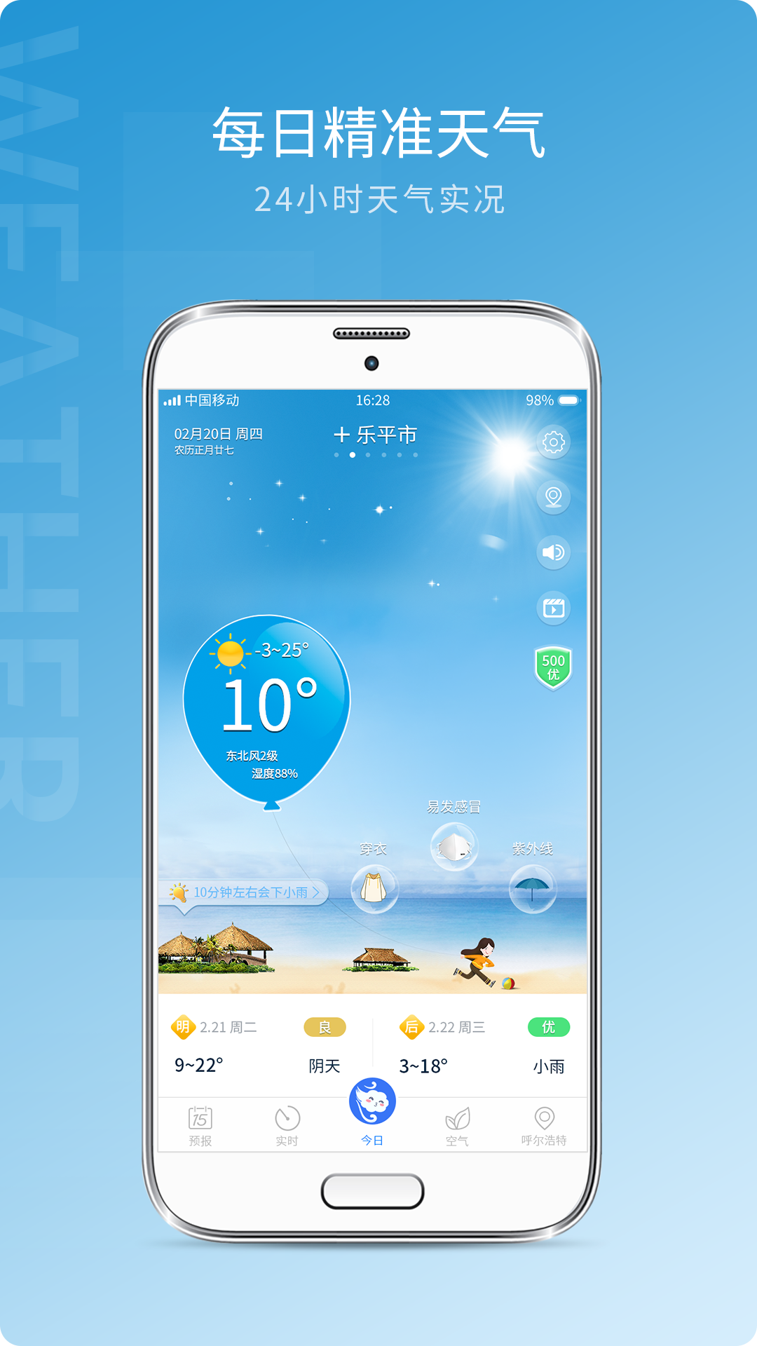 【全面天气】温度、天气状况、风向、湿度、空气质量、生活指数。