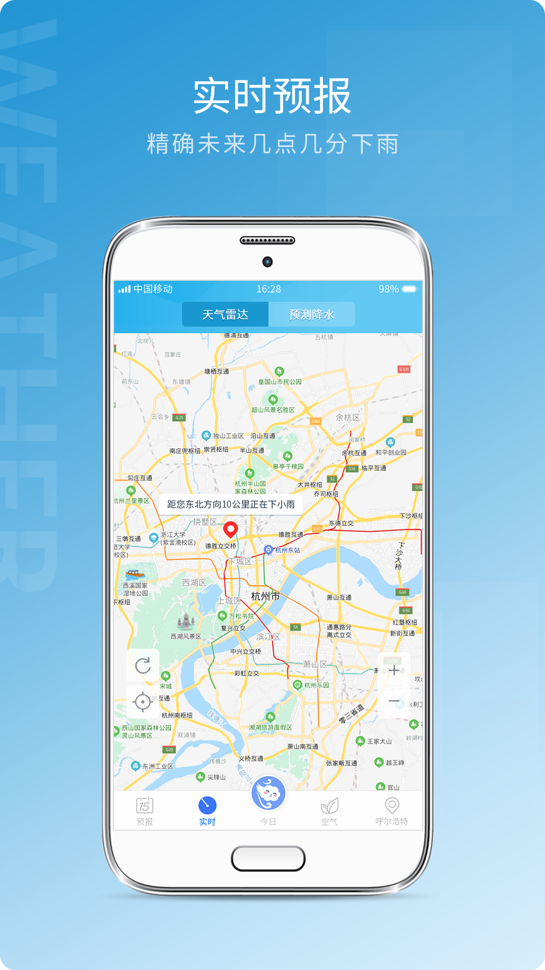 【天气雷达】分钟级降水量预报,准确预测未来2小时是否下雨及降水量。