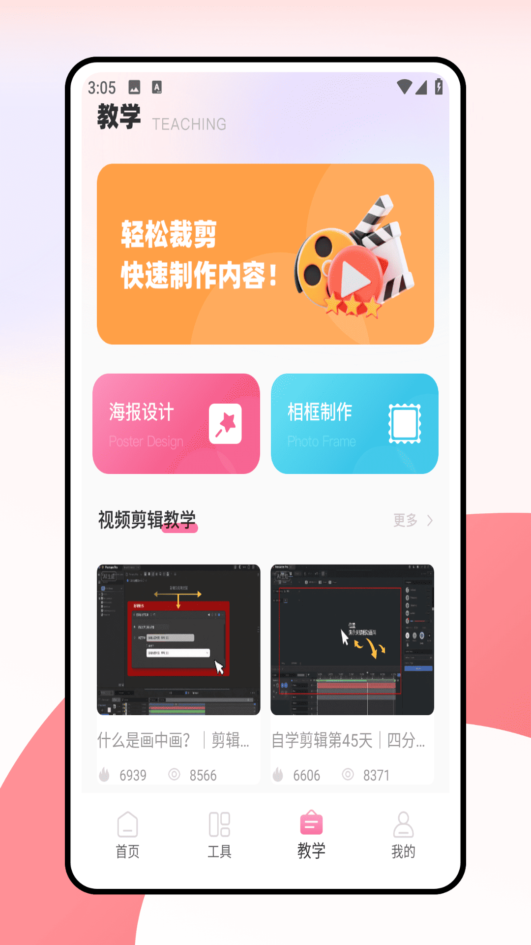 应用详情:这款应用是集多媒体创作与教学于一体的宝藏工具。首页可拍照、录音、录视频 ,工具页能音频编辑、文转声等,教学页还有海报设计、视频剪辑教程 ,从基础创作到进阶学习,满足多样需求,还有多媒体创作技能