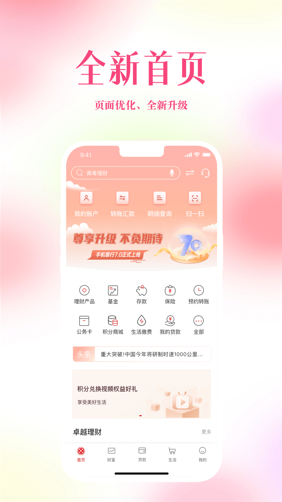 广东南粤银行手机银行,融合智能手机特性,采用当前主流的、新颖的扁平化设计理念,为您带来全新的操作体验,让您尊享畅快自如的移动金融生活!它具备丰富的产品功能、良好的用户体验、完备的安全控制,是您的移动理财好帮手。