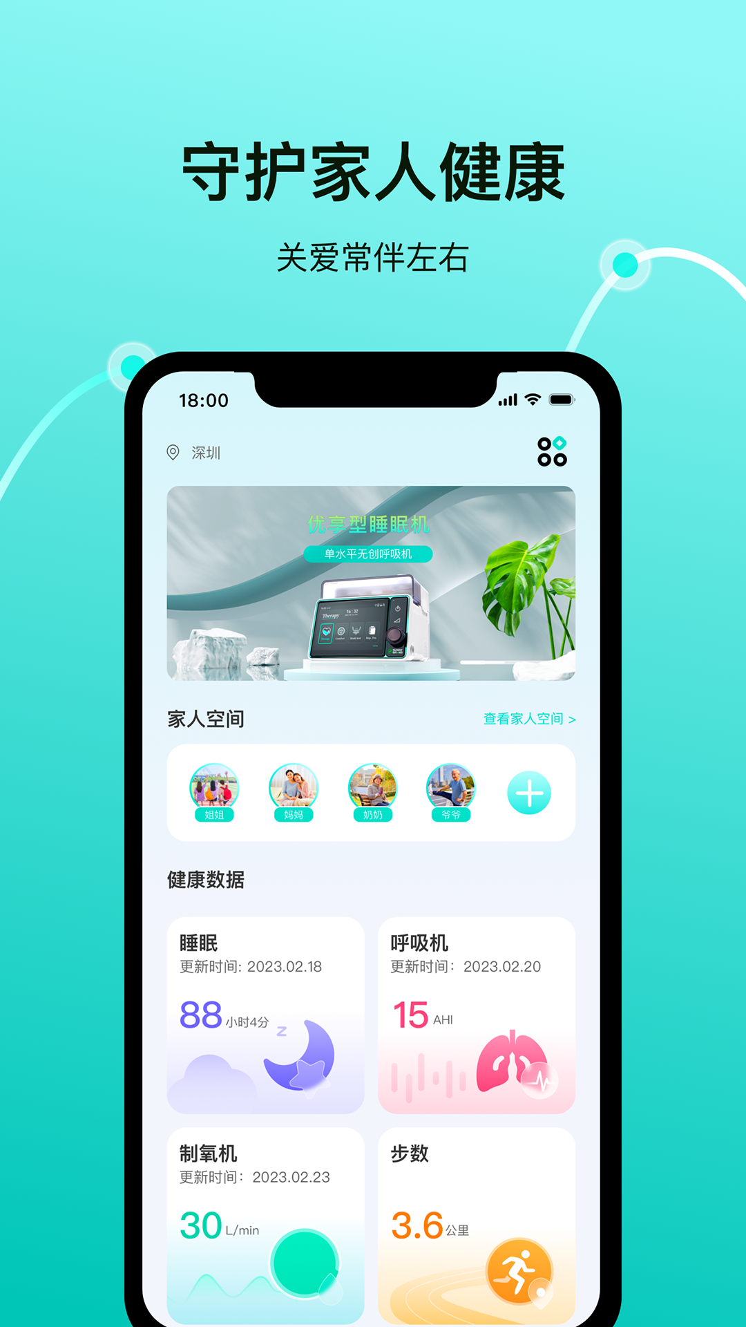 应用详情:伟晴健康管家——让你的睡眠实现数据可视化 -联动呼吸机等设备管理 -家庭互...