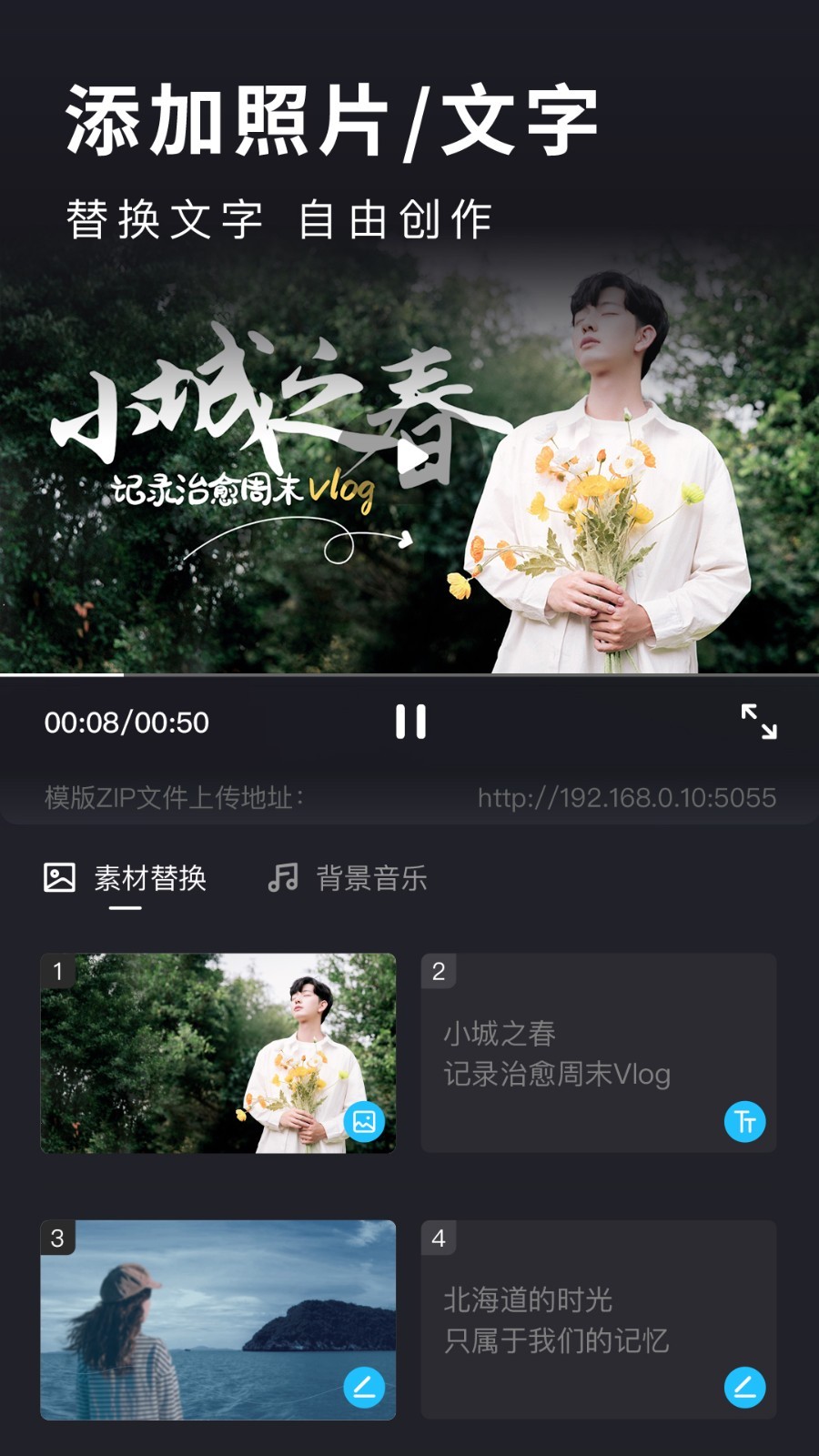 支持添加照片和视频,添加文字制作字幕效果,让你的视频更专业!