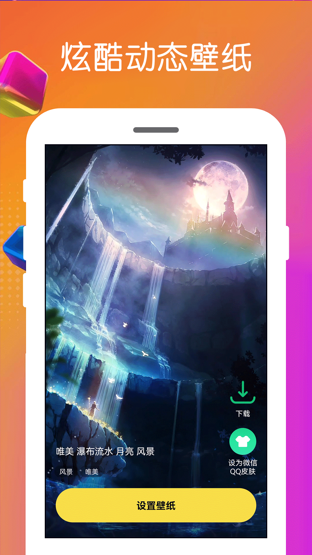 应用详情:1、汇集海量动态壁纸,热门高清小视频,享受无损视觉盛宴,个性化壁纸与众不同,让你的手机炫酷到爆炸。