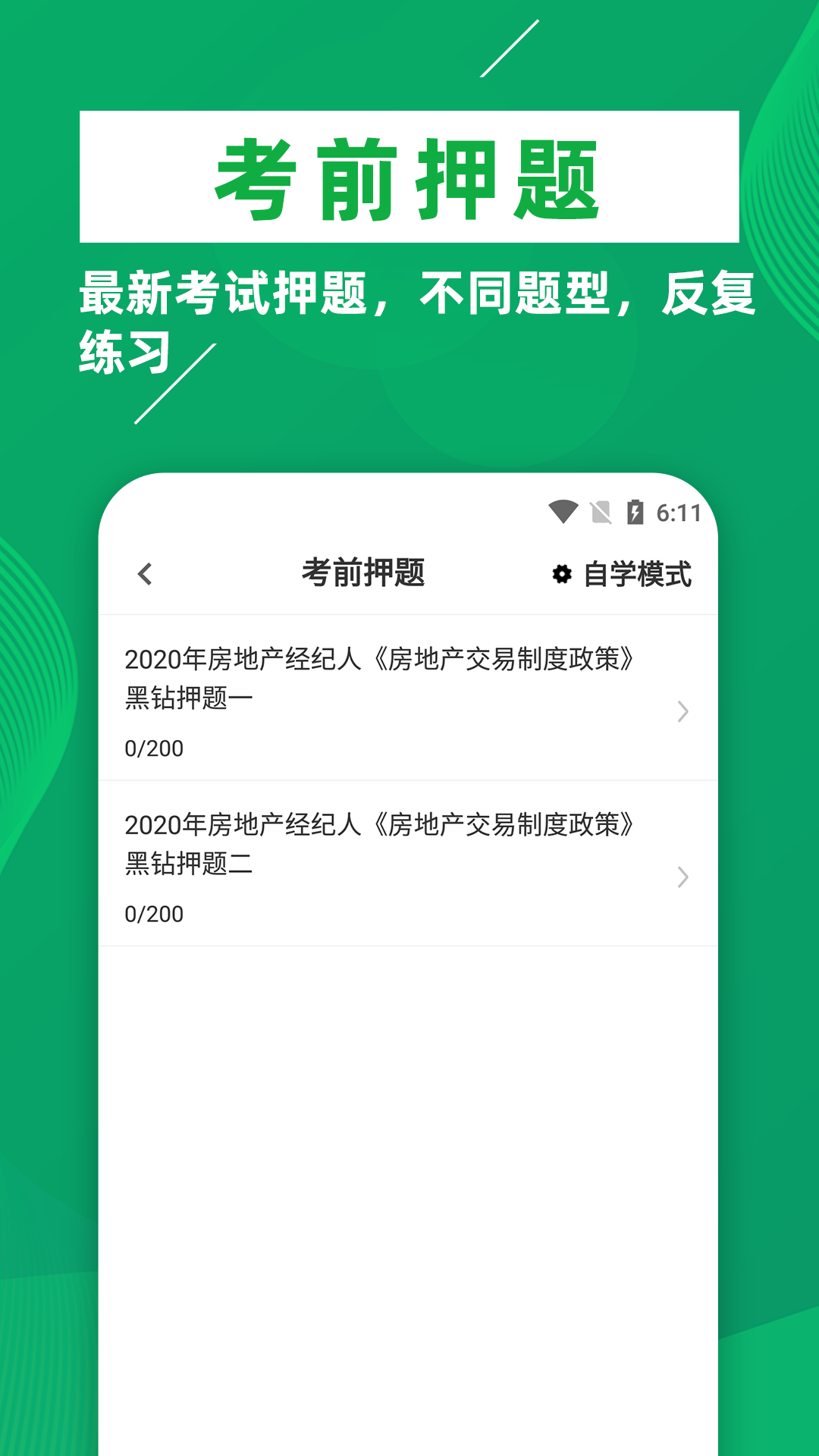 房地产经纪人牛题库提供房地产经纪专业人员职业资格考试题库,包括:《房地产交易制度政策》、《房地产经纪职业导论》《房地产经纪专业基础》、《房地产经纪业务操作》,覆盖教材大纲,含章节练习+历年真题+模拟押题+错题库。 【章节练习】按章节练习,试题附解析; 【历年真题】全科目最近几年考试真题; 【摸拟押题】摸拟押题,智能组卷,检验复习效果; 【模拟考场】100%模拟考场,快速冲刺; 【错题库】错题加入收藏,针对性练习;