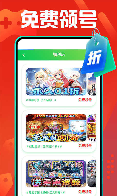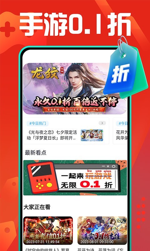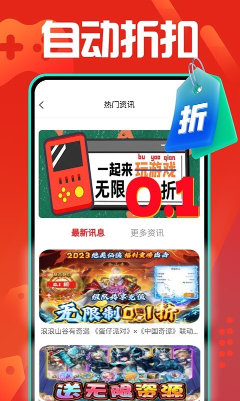 应用详情:手游0.1折,送万元真充、满级VIP等游戏福利! 【0.1折手游】官方授权、首续0.1...