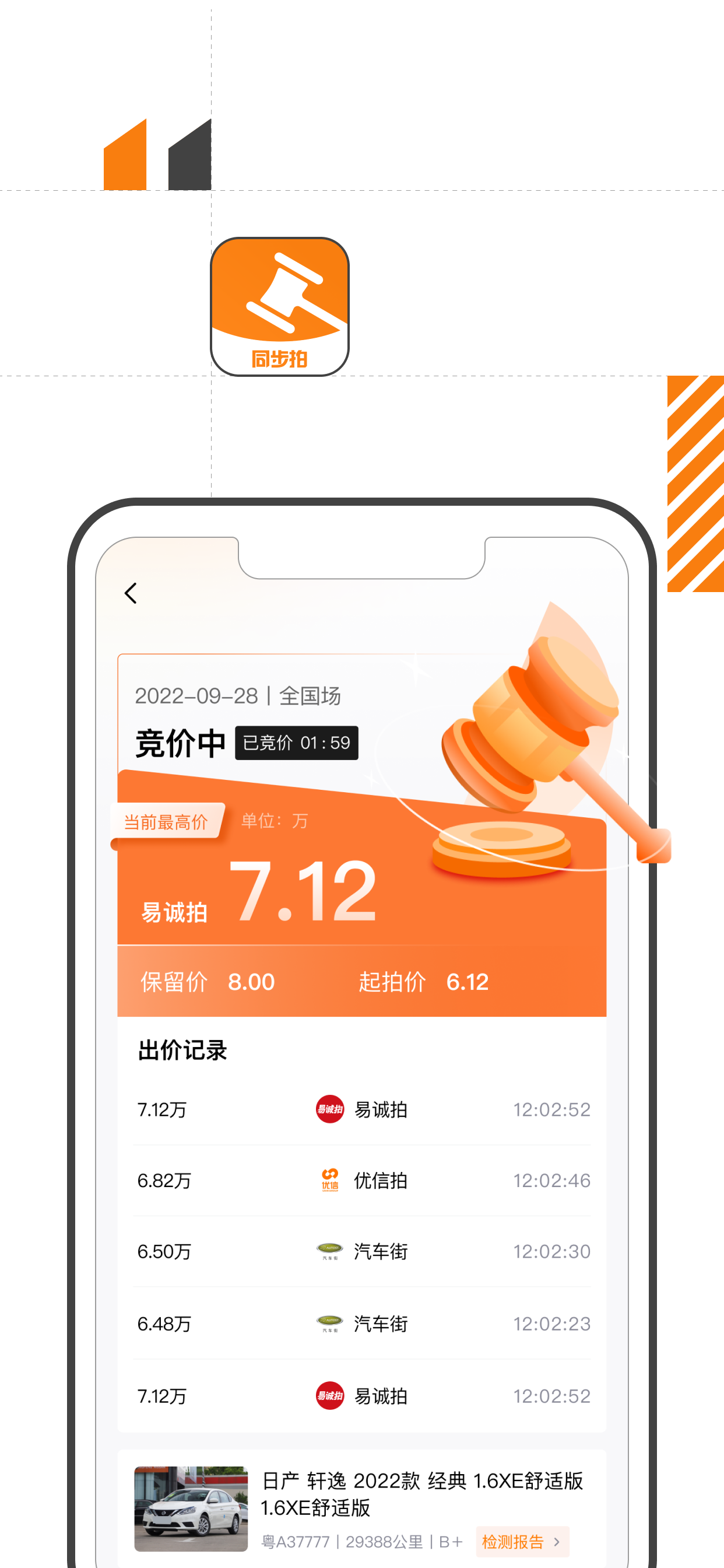易诚同步拍聚焦新车4S店二手车业务的细分市场,集成线上和线下竞价、实时获取竞价信息。能在此APP上使用下单检测车辆, 实时查看竞拍信息