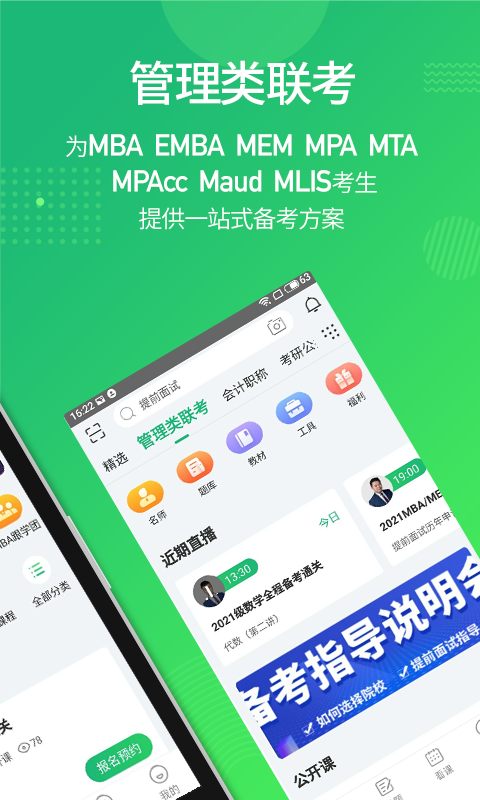 【MBA直播课优质免费】mba/mpacc/mem/mpa/emba考试备考视频直播课,紧扣MBA/MPAcc/MEM/EMBA管理类联考大纲,行业有名的老师逐一讲解知识点,为你搭建复习框架,告诉你考试的核心得分点,备考路上助你一臂之力!除了笔试课程外,还有免费的面试、复试视频直播课,真正的帮你一站式通关上岸。