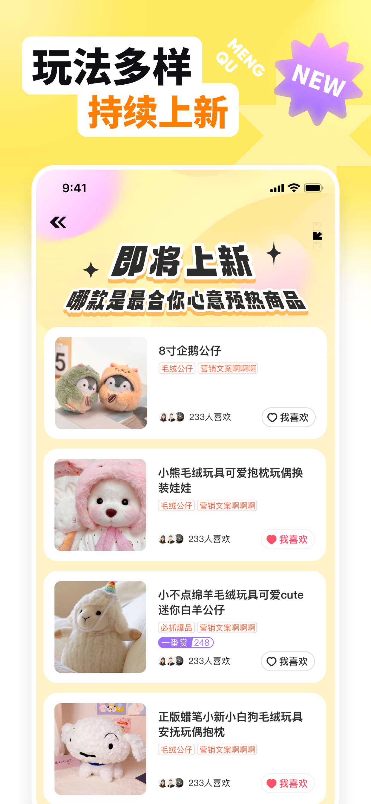 应用详情:《萌趣联盟》是一款专为广大消费者打造的时尚购物 APP, 旨在为用户提供全方位的购物体验和便利。无论你是想购买生活用品、娃娃公仔、时尚饰品还是电子产品等等,都能在《萌趣联盟》中找到你所需的商品。