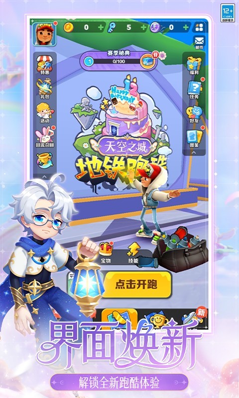 《地铁跑酷》天空之城版本开启!奔跑在云雾缭绕的空中花园,疾驰于星月交织的长廊,梦幻的天空之城如画卷般徐徐展开!神仙阵容袭来——“爱神”阿芙洛、“堕落天使”萨麦尔、“星辰守护者”莱昂,“爱乐之神”卡莉,齐聚周年庆典,一起为地铁跑酷庆生!系统焕新升级,多重优化等你体验;全新活动“神赐华礼”上线,收集星光,赢取道具与跑酷币;12周年庆典签到,登录即送限定头像框与新滑板;三重秘典“神域乐章”全新改版,福利重磅升级!更有2025年度回忆等你来解锁独属于你的“神格”!快来踏入天空之城,在云端书写属于你的神话!