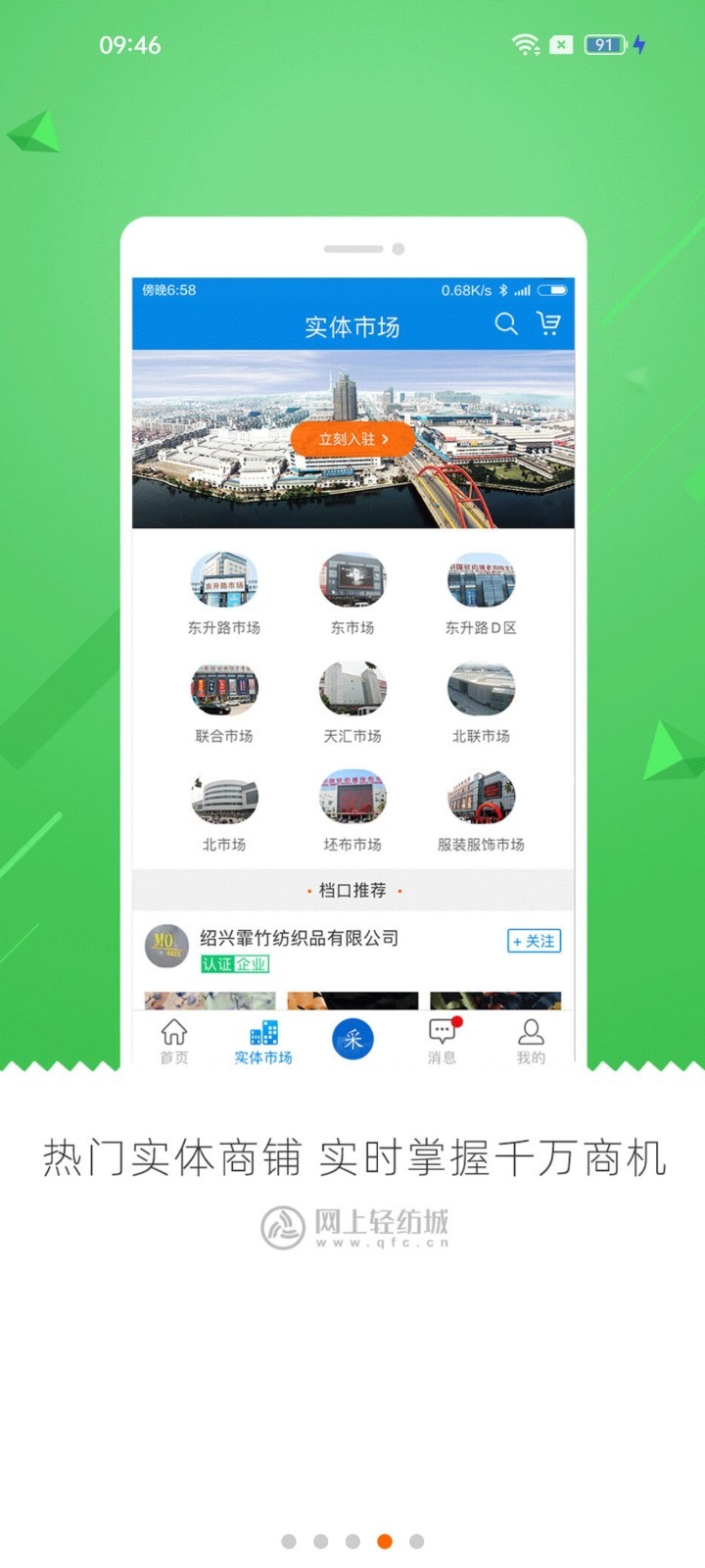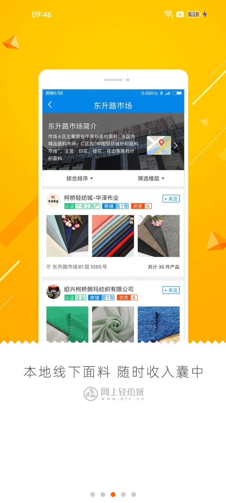 网上轻纺城APP是由网上轻纺城网站官方开发,为纺织从业者提供的手机应用,随时随地,抓住生意机会。 APP与网上轻纺城实现数据同步,在这里,供应商可以便捷开设、打理网上商铺,通过手机快速拍摄并发布新品信息,随时随地管理、跟进客户订单; 采购商能够在这里快速搜索感兴趣的纺织产品,发布采购需求,及有效管理相关订单。这里是纺织人士移动端聚集地,收藏店铺、互加好友,帮助您发展生意伙伴、保持客户联络;同时具备资讯浏览功能,每天推送纺织头条,及时掌握业界动态。