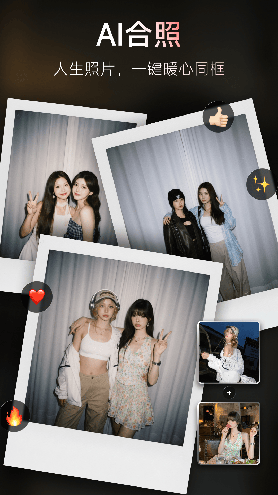 【AI合照全新上线】异地各自拍,同框零距离。AI黑科技×人像美颜。超自然生成合影,还原真实互动感。合照不求人,一键get专属合拍!