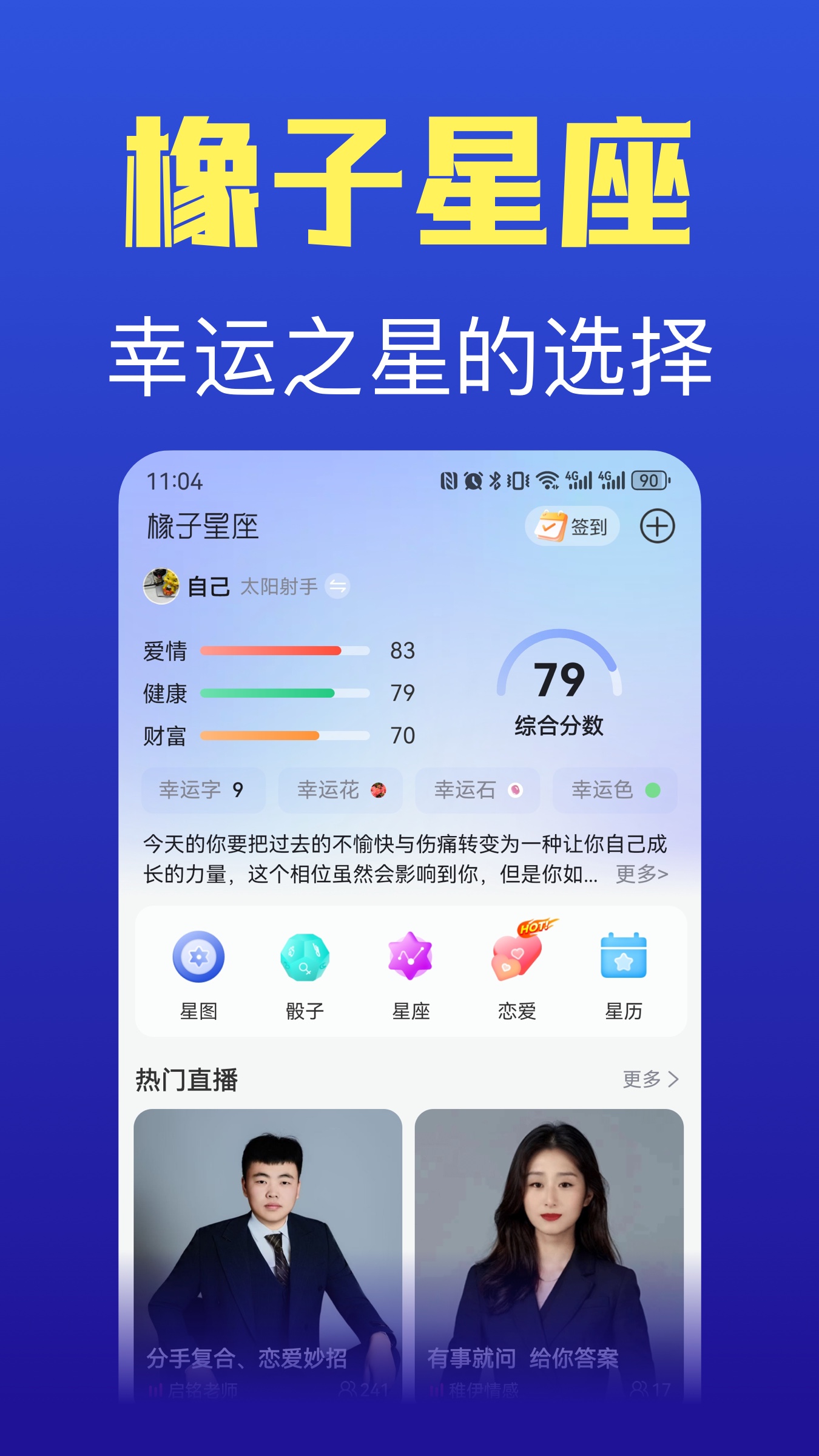 应用详情:橡子星座汇集了上万星座方面心理咨询师实时在线语音一对一专业服务;提供了多种专业星座工具,帮助每个人更好的认知自我,更快乐自信地生活。