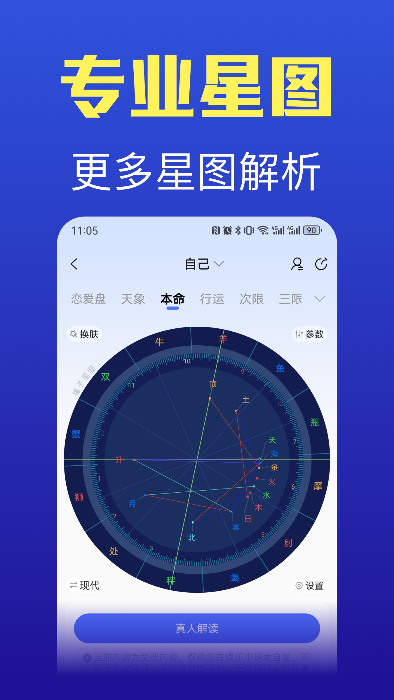 提供专业盘面;提供了百万字的星座解释数据,各种详尽的参数,大幅提升星座分析效率。
