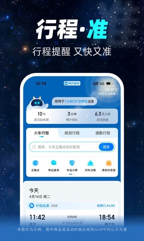 - 轻松管理「我的行程」,实时查询列车动态,停运、晚点早知道