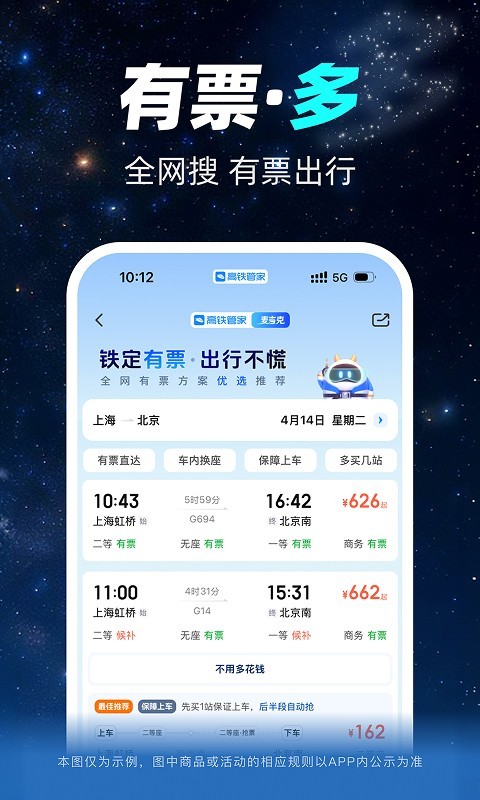 - 铁定有票,智能中转,配合智能算法,提供更多出行方案