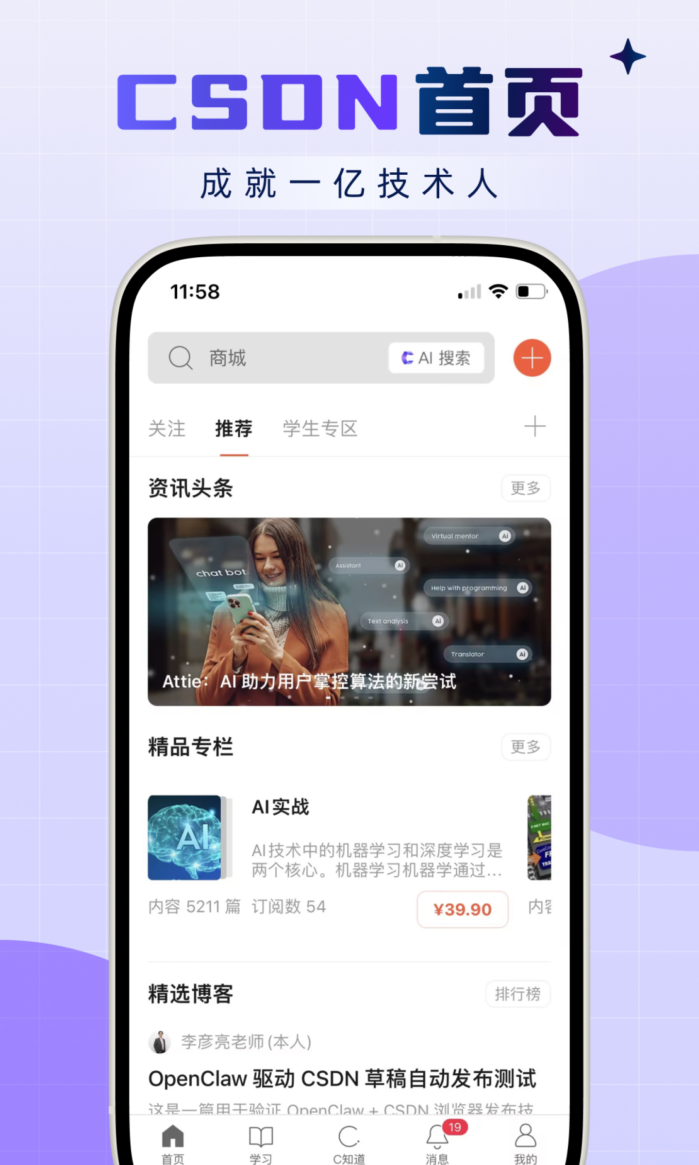 CSDN,致力于为中国软件开发者提供知识传播、在线学习、职业发展等全生命周期服务,并不断完善在移动端的学习体验,欢迎大家体验,提出宝贵意见~