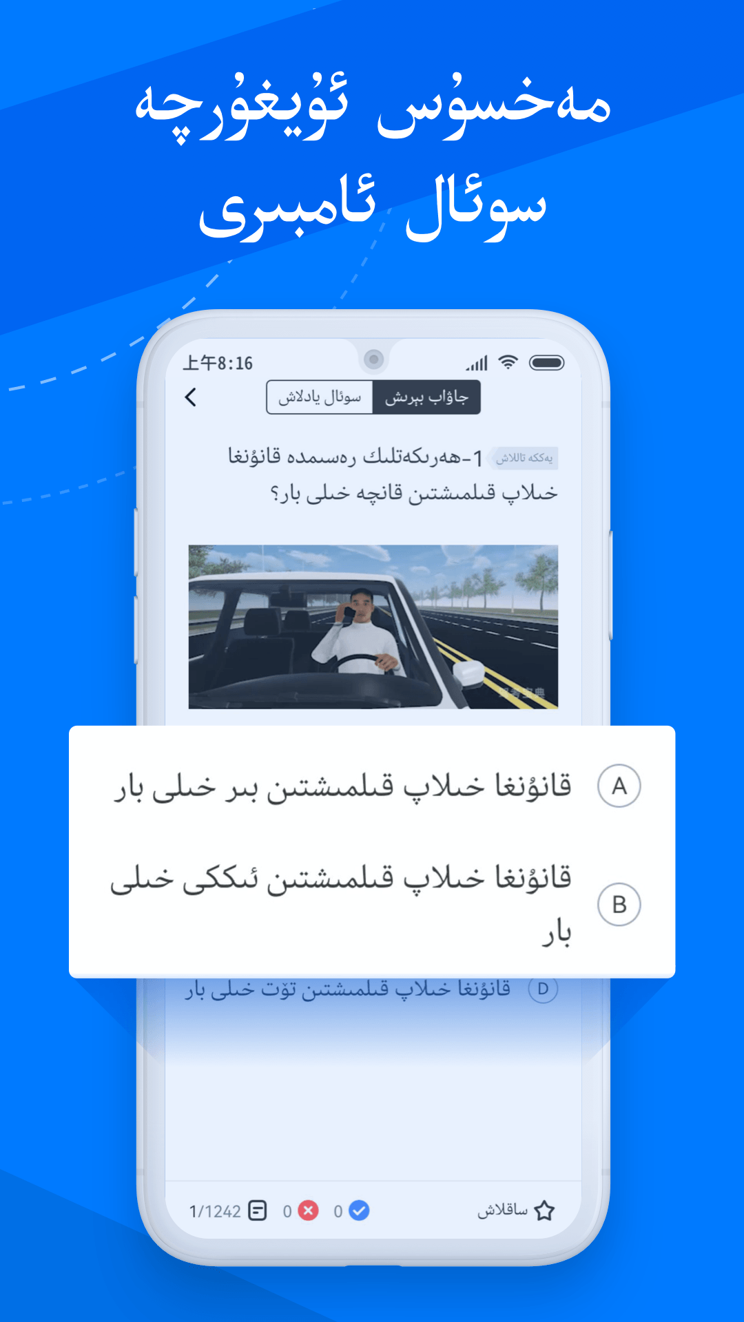 驾考宝典隆重推出维语版软件啦!本软件为维语用户量身定制的小车题库,书写延续维语用法自右向左书写,同步至全国2026年新版考试题库!