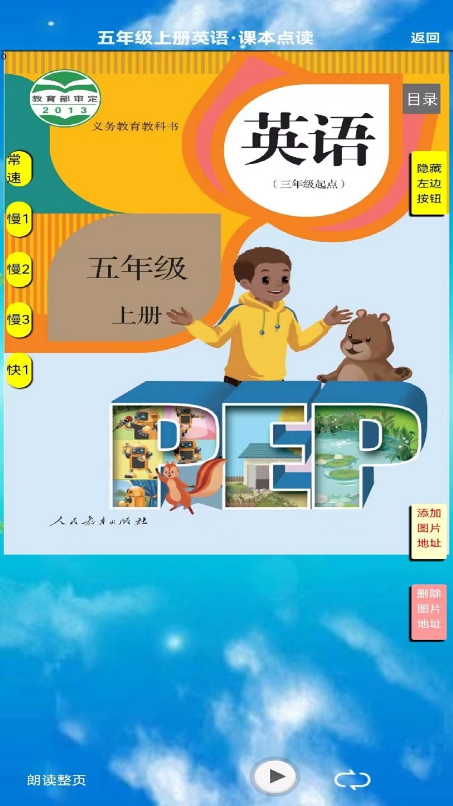 人教PEP、译林版、冀教版、外研版五年级英语上下册等版本英语点读。 【主要介绍】 1、多版本英语课文点读、翻译、朗读等。 2、单词的点读,听写、朗读等。 3、单词的在线自测。 4、语文课文点读,生字听写等。 5、英语音标点读、。 我们的目的是:让学习变得更方便、更高效!