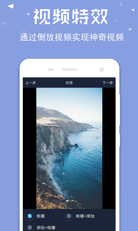 应用详情:视频倒放助手是一款视频剪辑应用,通过剪辑,倒放或是添加背景音乐,它能够让你为新拍摄的视频或是从手机里选择的视频创造出有趣的效果。