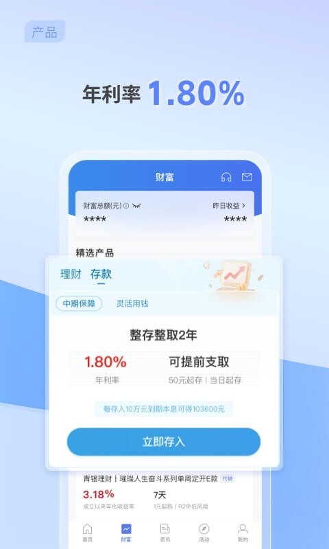 【定期存储蓄】既有收益率达1.80%的二年定期存款产品,也有三个月、六个月等短期限的存款产品。