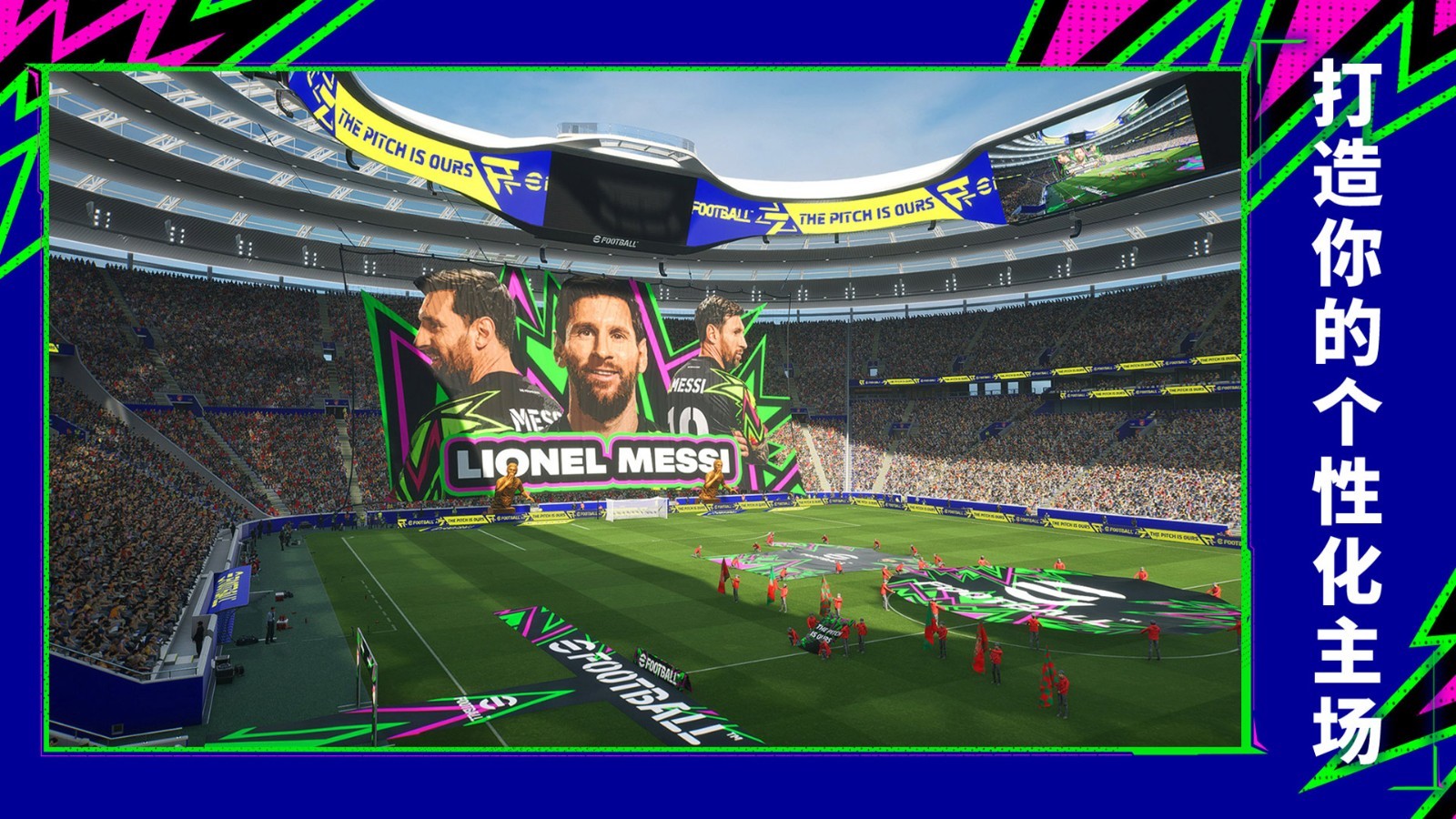 实况球场将新增自定义功能,快来打造独属于你的独特主场吧!新版本中,你将能按自己的喜好自由组合多种元素,包括球场颜色、草坪图案、巨幅海报、巨型道具等。此外,你还可以为球队设置最能体现你个性的三套球衣,向所有对手展示你的风范!