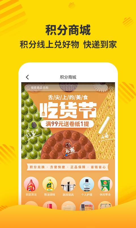 3、礼品兑换:使用积分在积分商城兑换心怡礼品,海量品类尽情挑选,线上兑换快递到家;
