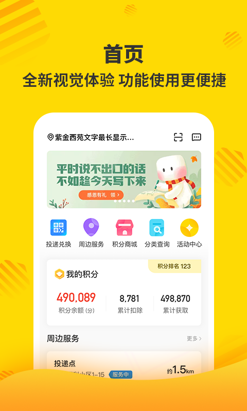 4、周边投递点:一键查看周边垃圾投放点,快速导航,贴心引领投递;