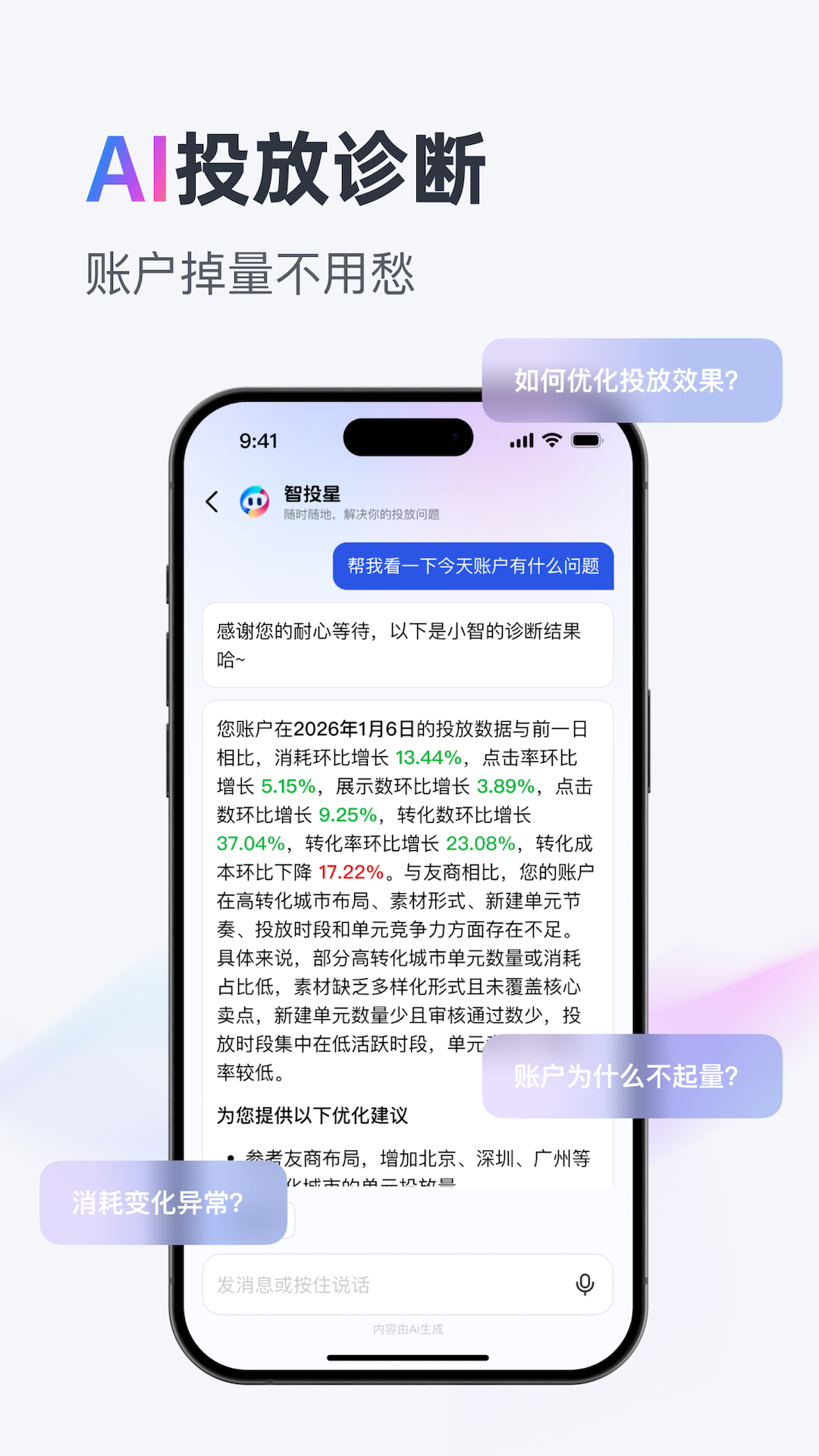 巨量引擎App,是巨量引擎旗下专业的移动营销管理平台,整合了巨量引擎旗下巨量引擎工作台、巨量方舟、巨量营销、巨量千川等多款产品的核心功能,为客户在移动端提供一站式的投放管理服务,帮助客户随时随地进行营销管理。巨量引擎App,您的掌上营销专家。
