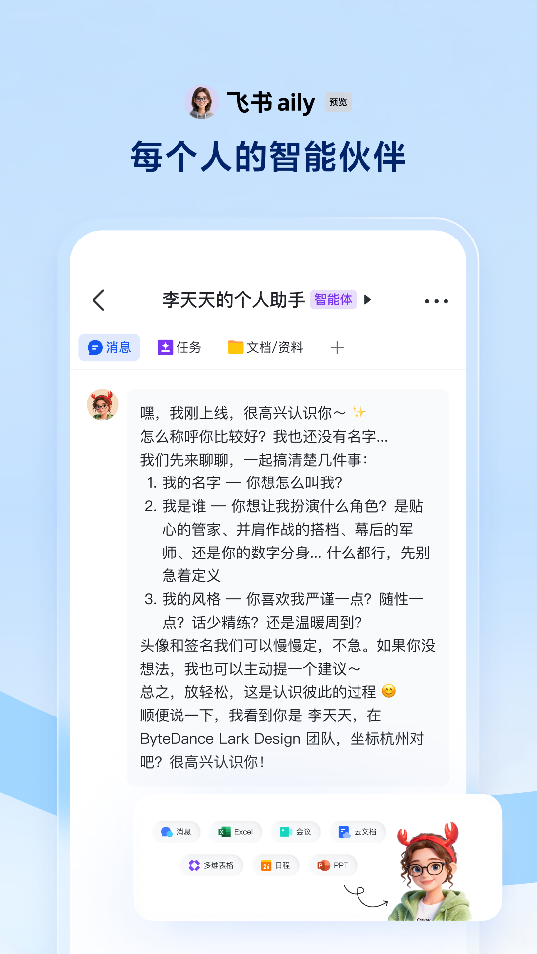 - aily:官方 AI Agent,无需安装、一键启用,深度融入日常工作流,懂你所有工作上下文、有记忆、会主动工作,越用越懂你