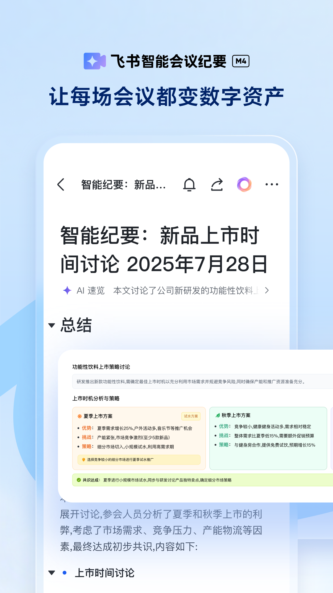 - 智能会议纪要:会中实时总结、会后全面回顾,精准会议纪要与待办提炼,每场会议都成为组织数字资产