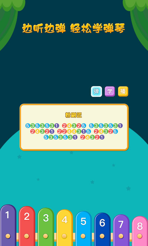 精美的画面,动听的木琴声音,美妙的音乐节奏,易学的儿歌简谱,让宝宝爱上弹琴,小手动起来,变身音乐家!