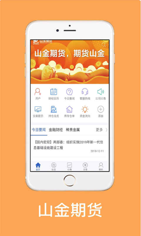 山金期货是山东黄金旗下专业期货公司,是期货衍生品领域的财富管理专家。山金期货手机APP是一款集开户、期货行情、期货交易、客户银期转账为一体的交易终端,山金期货是您理财的好帮手。