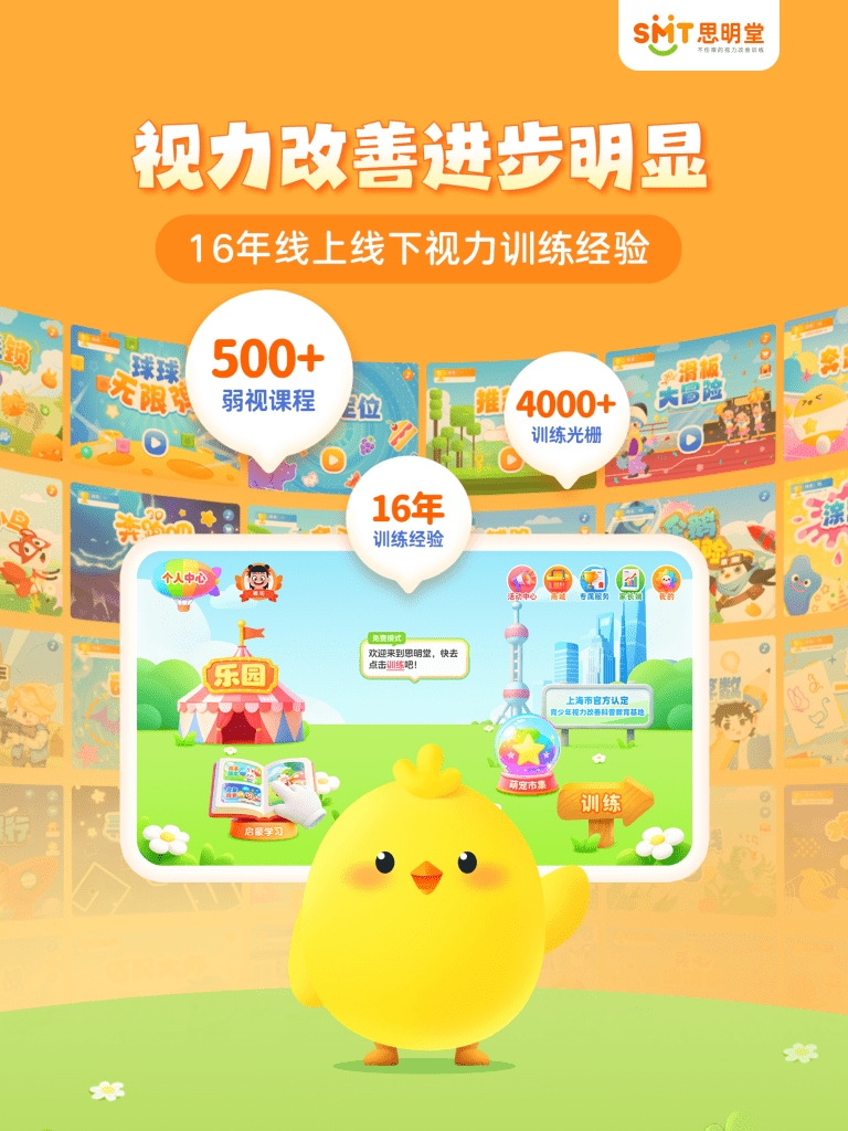 思明堂弱视训练会员版是一款增视软件,可以为不同类型、不同年龄、不同严重程度的弱视儿童定制个性化训练方案,结合专业人工指导服务,帮助弱视儿童改善矫正视力,提升双眼三级视功能,尤其是融合视和立体视。
