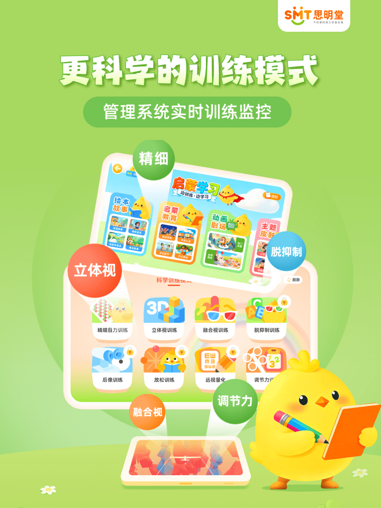 综合15年线上线下弱视训练经验,每月更新训练内容,生动有趣,孩子更喜欢。