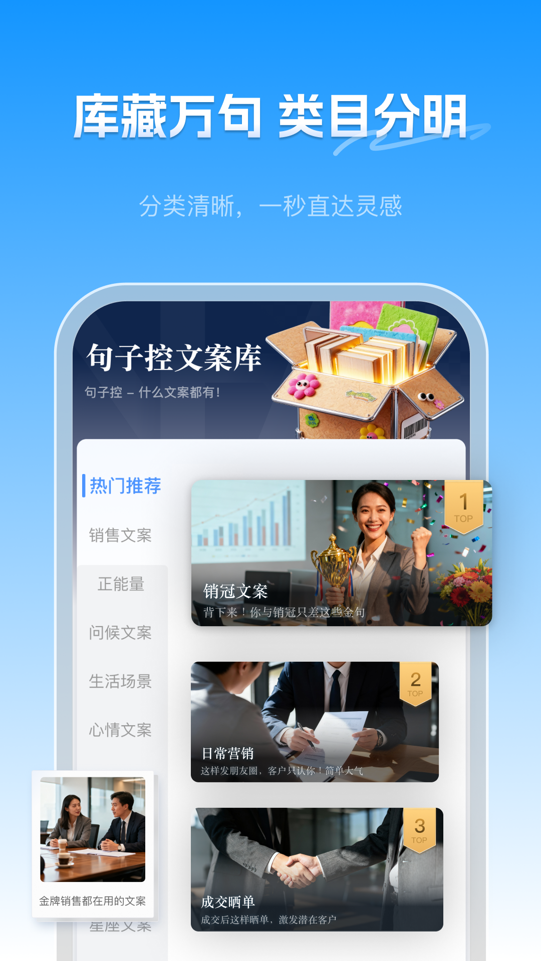 应用详情:句子控是一款汇集海量金句,提供文字生产&管理工具的金句阅读app。在这里,您可以尽情享受文字之美,感受文字的温度与力量。