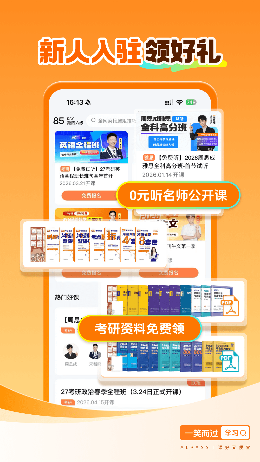 一笑而过APP应用是一款为中国百万大学生用户提供四六级、考研、英语学习、专四专八、雅思考试的备考辅导平台。平台拥有强大的师资力量和先进的教学服务团队,为用户提供教辅+服务的高品质学习解决方案,提供独家的学习图书资料大礼包,创始人周思成是原新东方名师,具有超高的人气,在广大学生中拥有良好的口碑和影响力。
