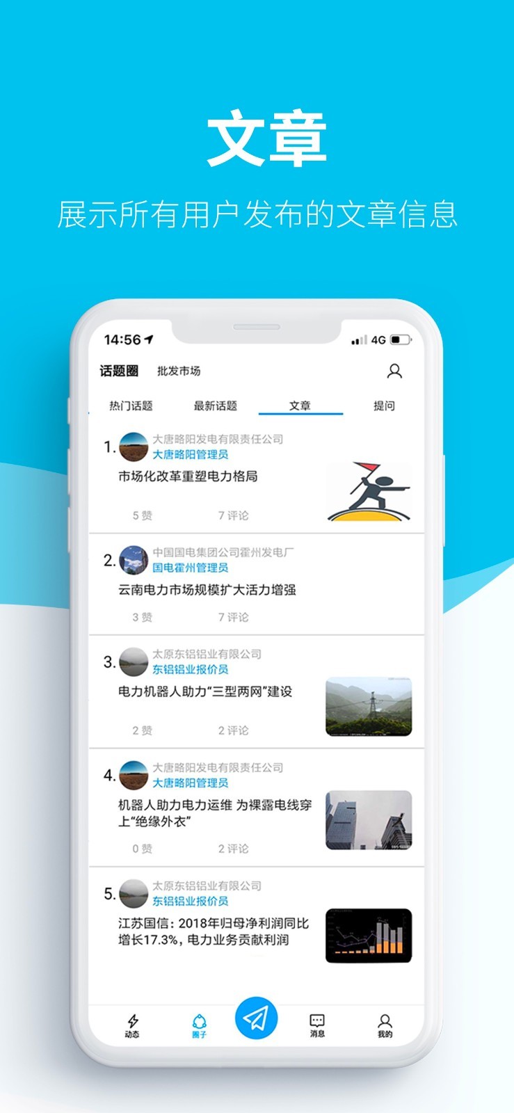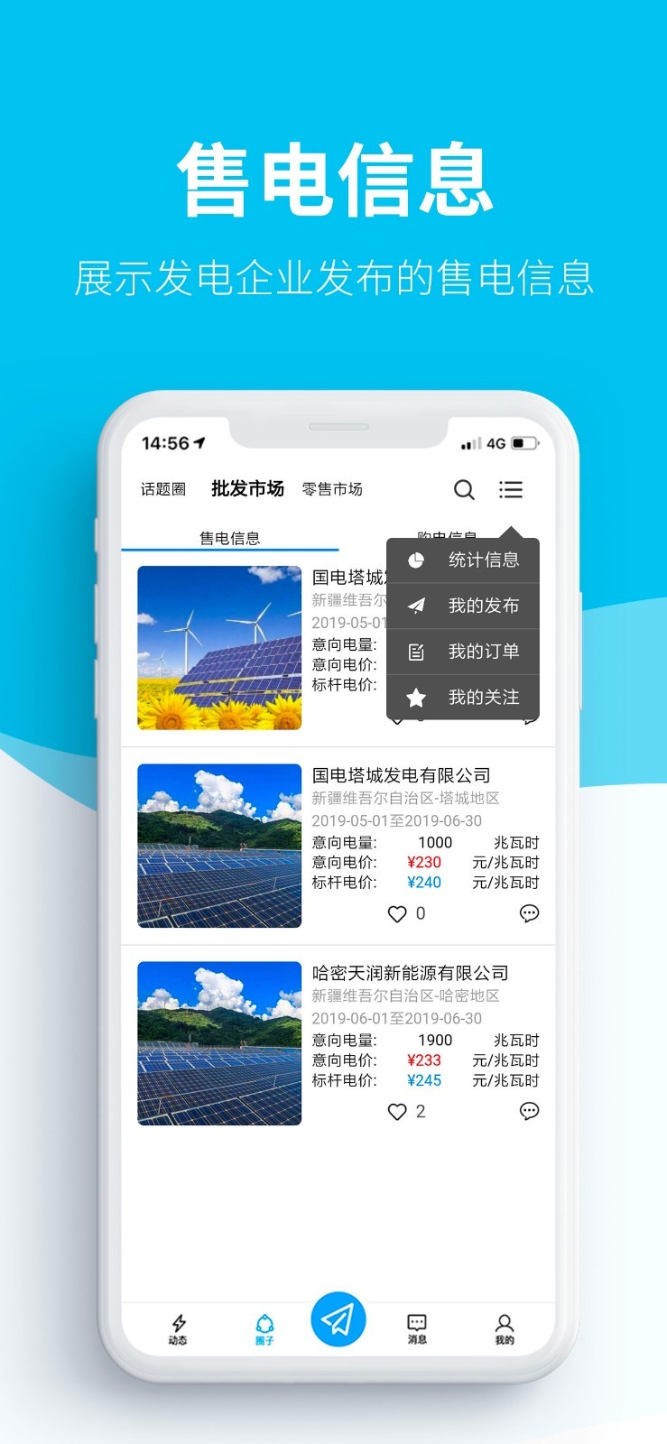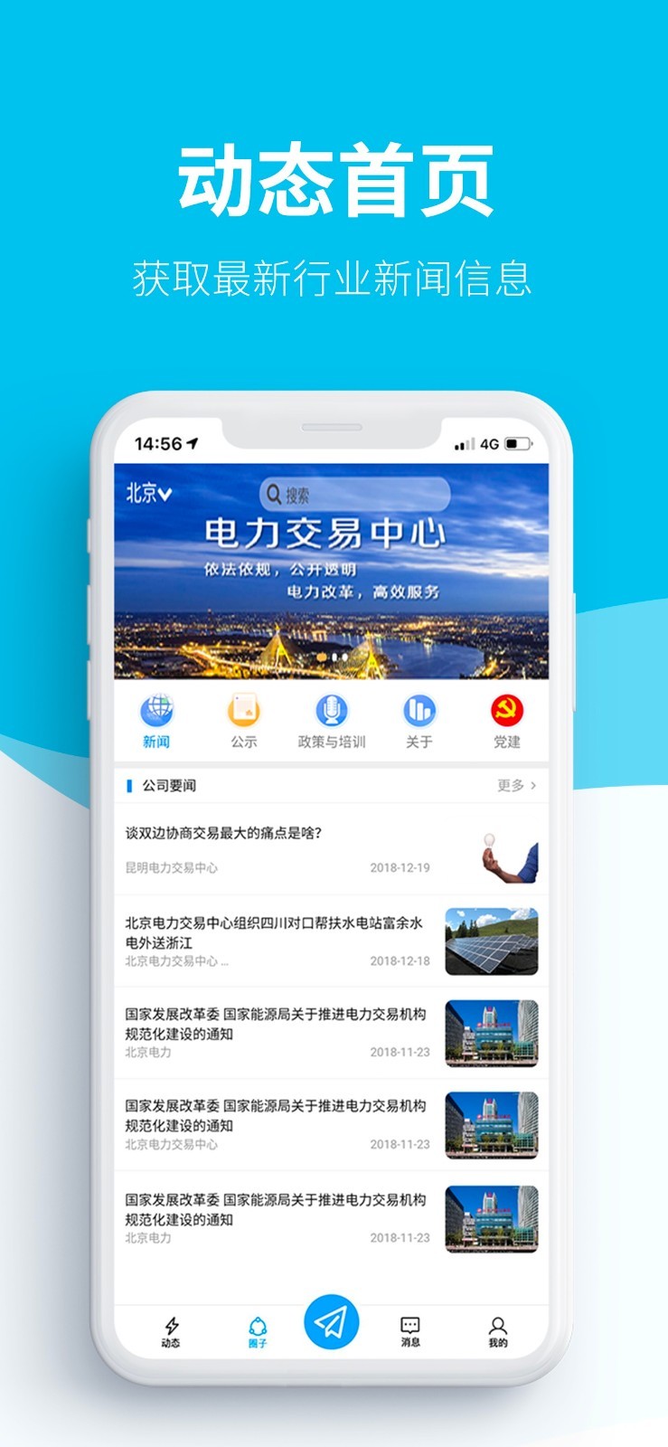 紧随当前移动互联网高速发展的步伐,贯彻电力交易中心“互联网+交易”的战略思路,业务系统向互联网产品思维的转化,为发电企业、电力用户、售电公司等市场主体以及社会大众提供好用、易用、安全的移动电力市场咨询和交易应用。亮点功能包括门户信息动态、话题圈、双边市场、即时消息、公众号等扩展功能,企业信息、交易、合同、计划、结算等业务功能。