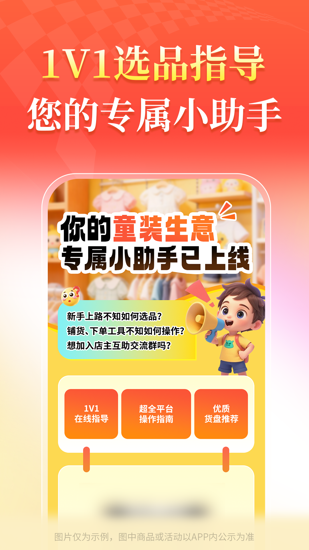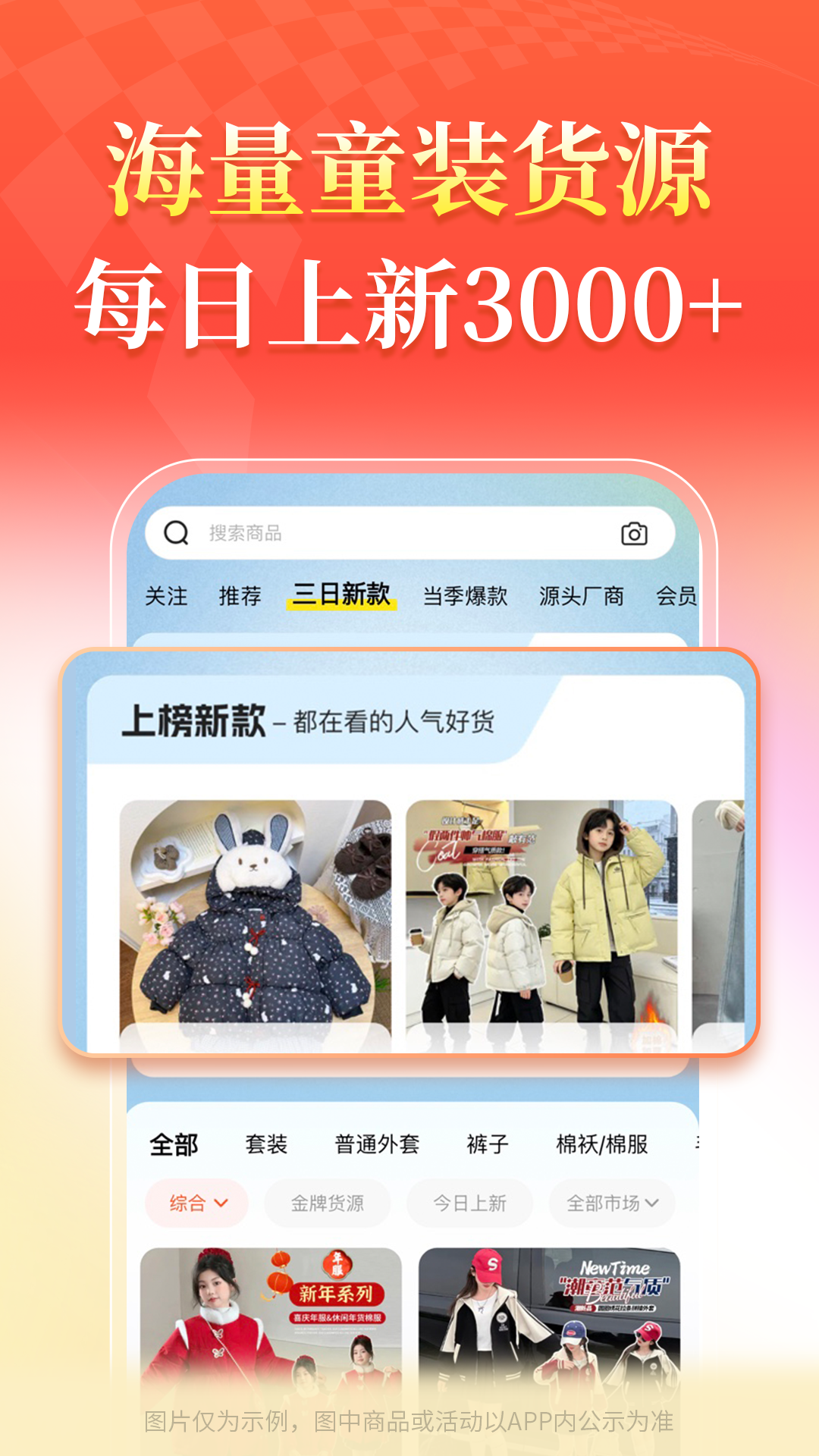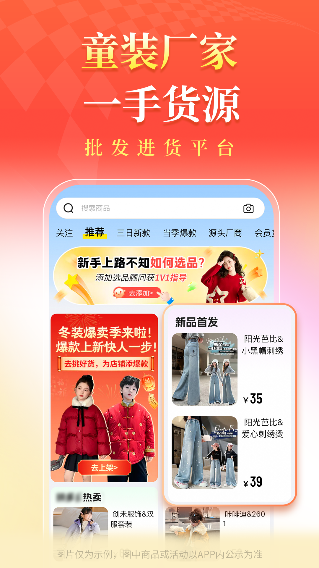 应用详情:找童装货源上生意网,源厂直供,数据助你选款,支持以图搜款,一键铺货,一件代发,24小时发货。