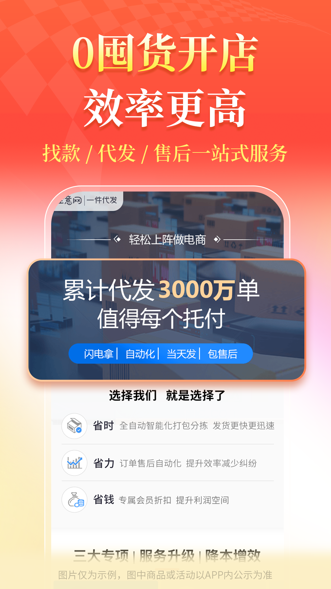 1、无需囤货,零成本创业:免费代理,支持代发货。