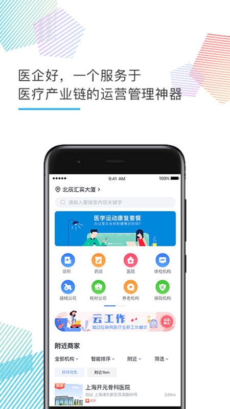 应用详情:医企好是一款专注于服务医疗相关产业链机构的运营管理APP,平台集合了诊所、药店...